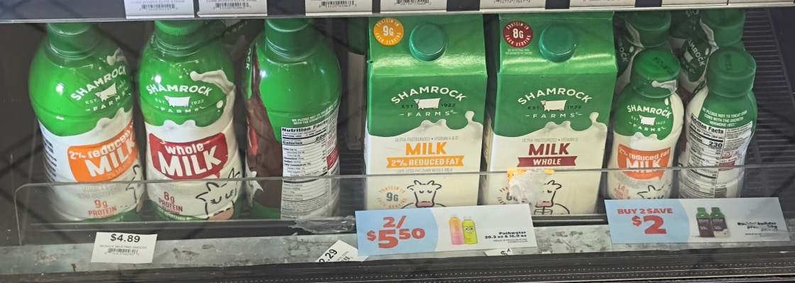 • 2% Milk (블루) — 지방 함량 2%. 미국에서 가장 많이 마시는 우유예요
