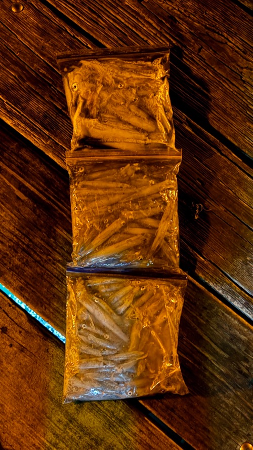 - 아이스박스 + 지퍼백 + 얼음 — 잡은 한치 신선하게 보관용